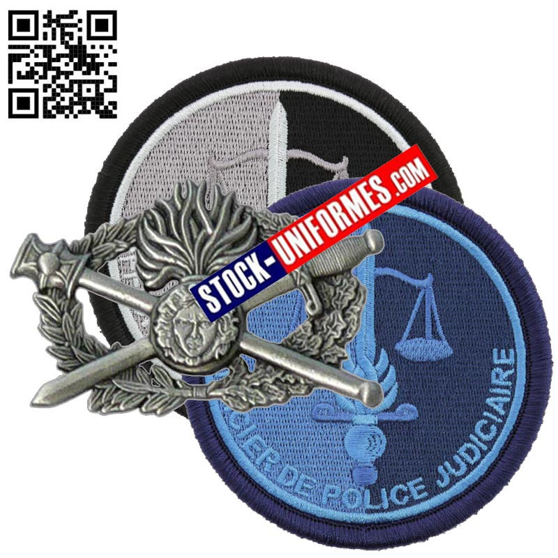 Lot OPJ Police Judiciaire Gendarmerie.3 écussons sur velcro pvc OPJ.1 brevet métal OPJ sur pins pour vareuse ou chemise.